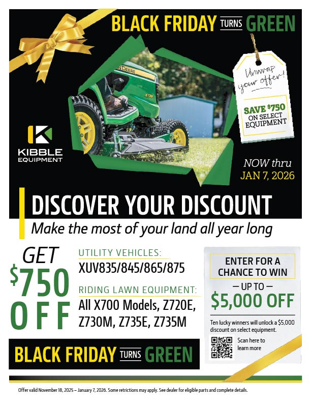 Take advantage of Kibble Equipment's Black Friday Offers! Now through January 7, 2026. Discover your discount - make the most of your land all year long!