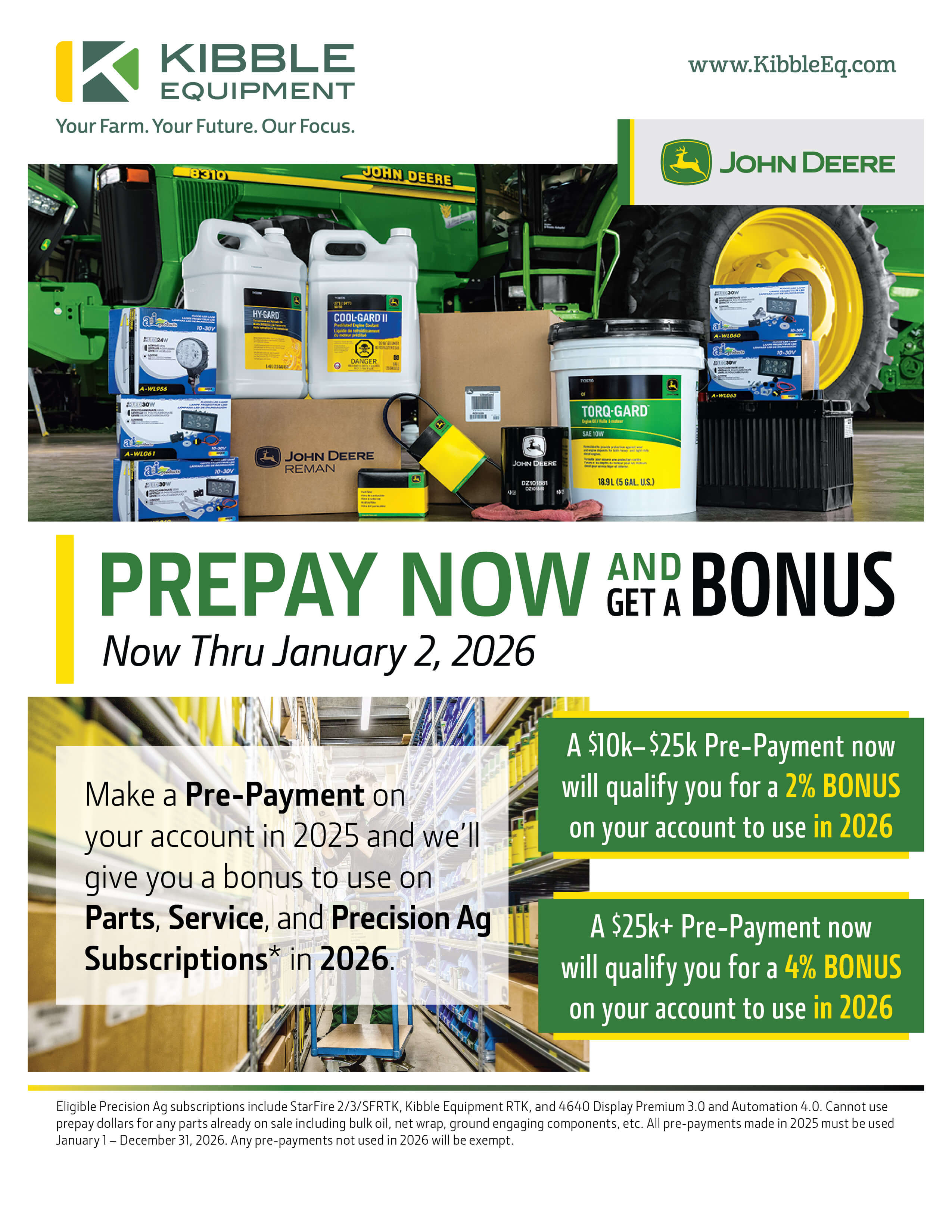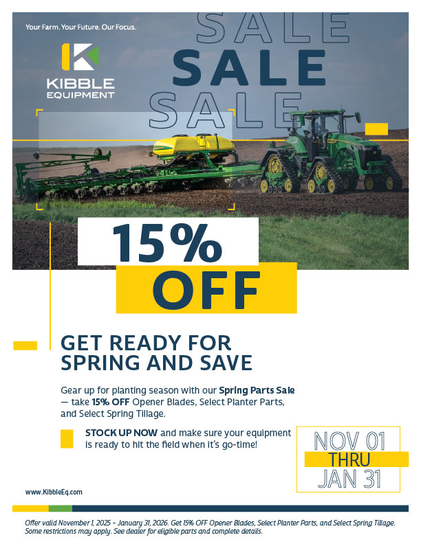At Kibble Equipment, we’re committed to helping you get the most out of every season. From powerful equipment to reliable parts and expert service, our specials are designed to save you money while keeping your operation running strong. Take advantage of these limited-time offers and put more value to work on your farm today.